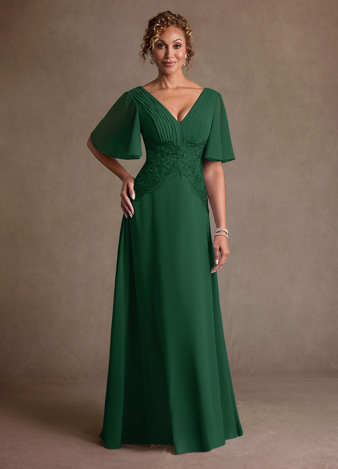 A라인 레이스 쉬폰 플로어 길이 드레스