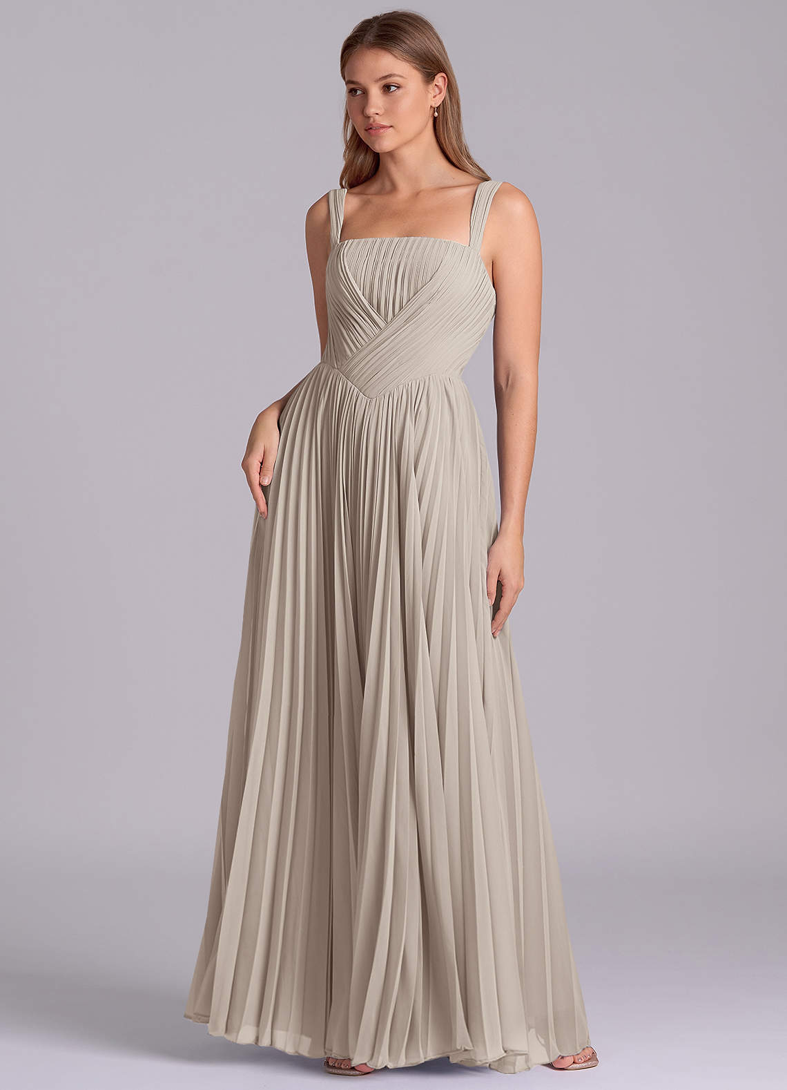 A라인 주름진 쉬폰 바닥 길이 드레스