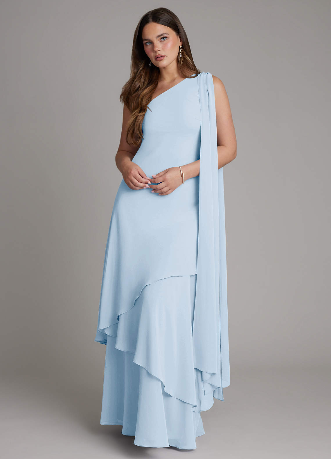 A라인 한쪽 어깨 쉬폰 바닥 길이 드레스
