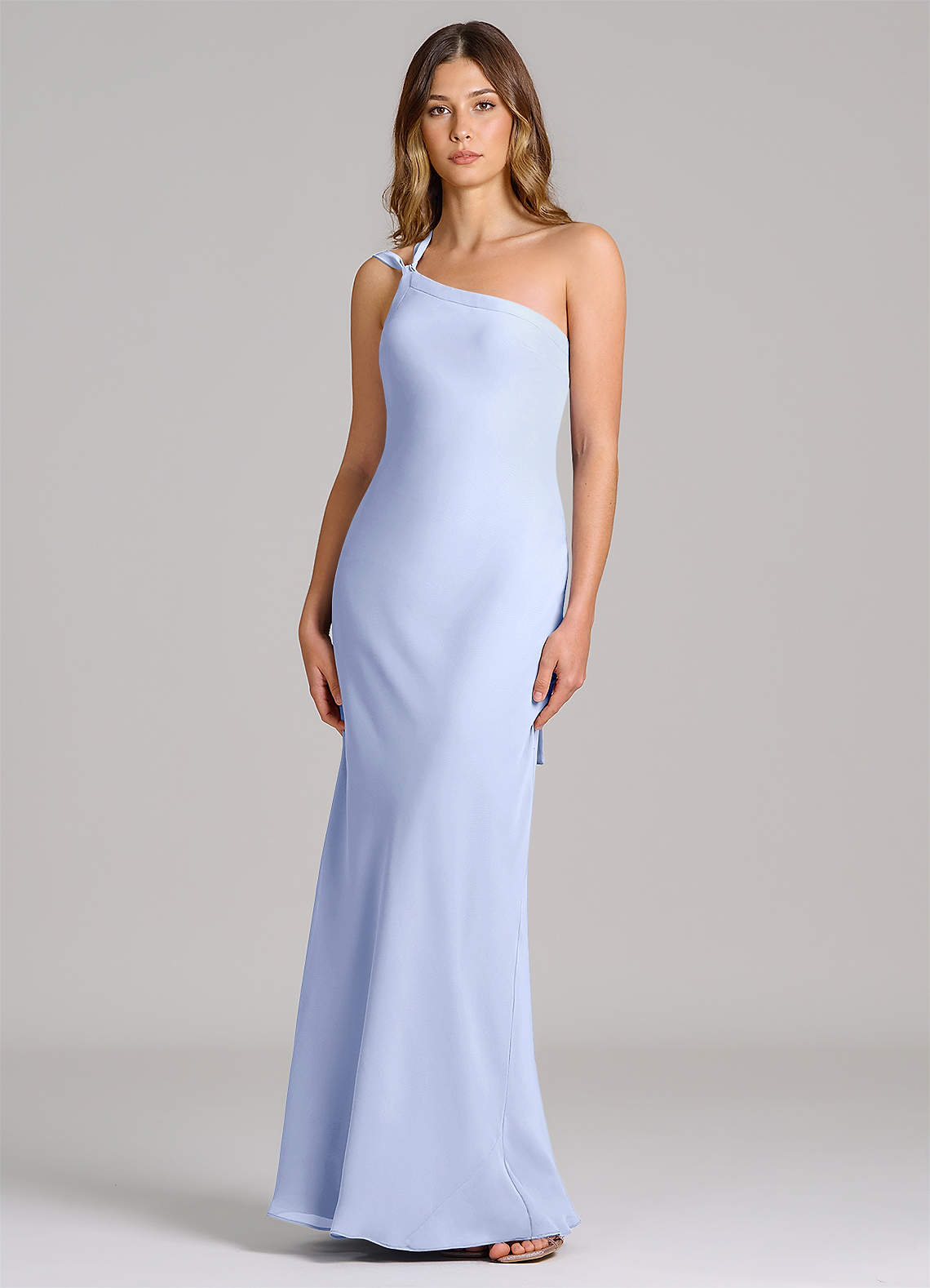 쉬스 한쪽 어깨 쉬폰 바닥 길이 드레스