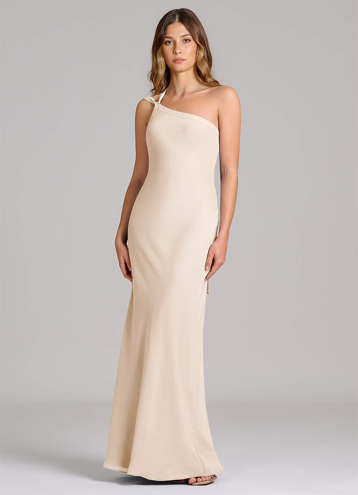 쉬스 한쪽 어깨 쉬폰 바닥 길이 드레스