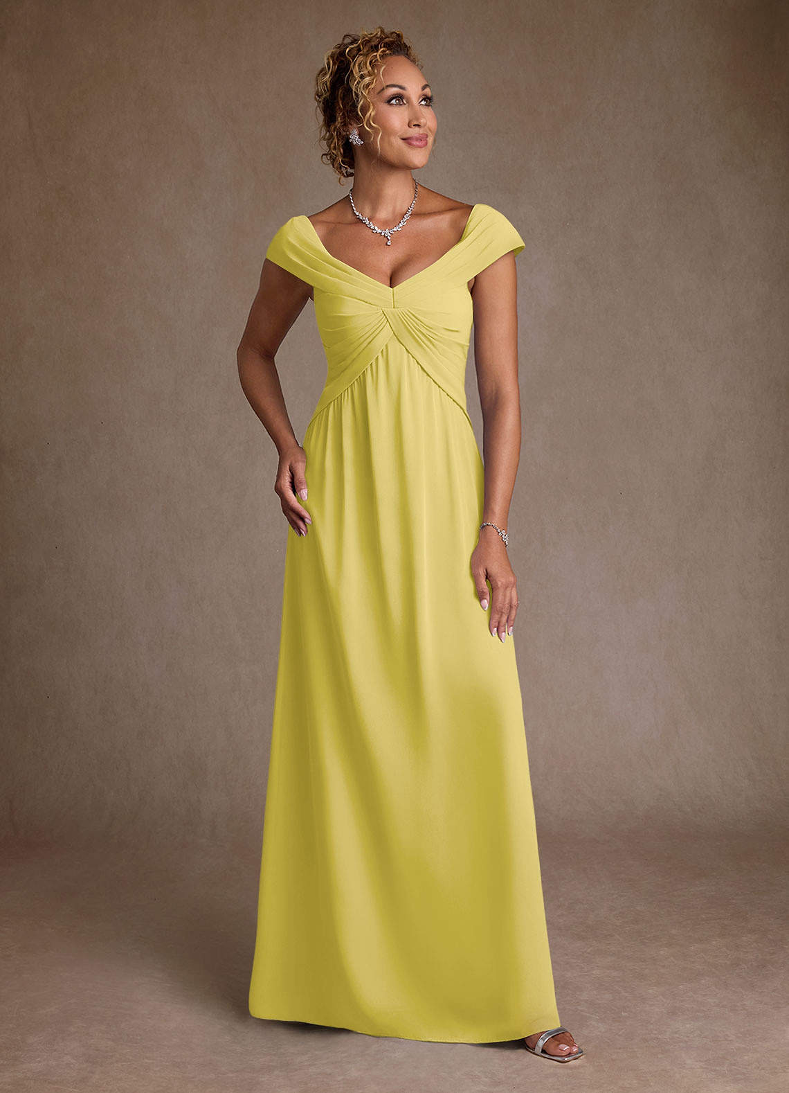 A라인 주름진 쉬폰 플로어 길이 드레스