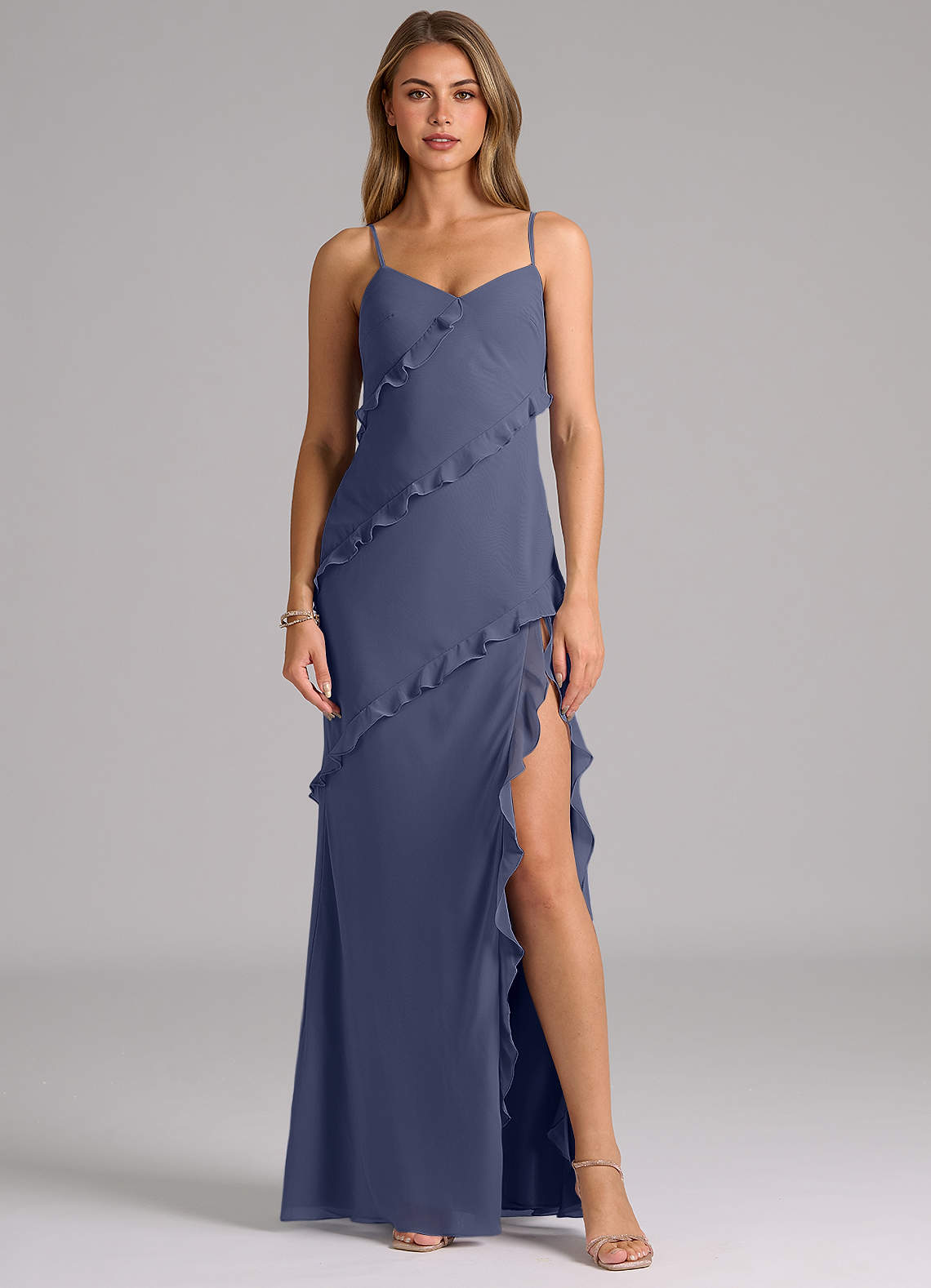 인어 셔링 쉬폰 바닥 길이 드레스