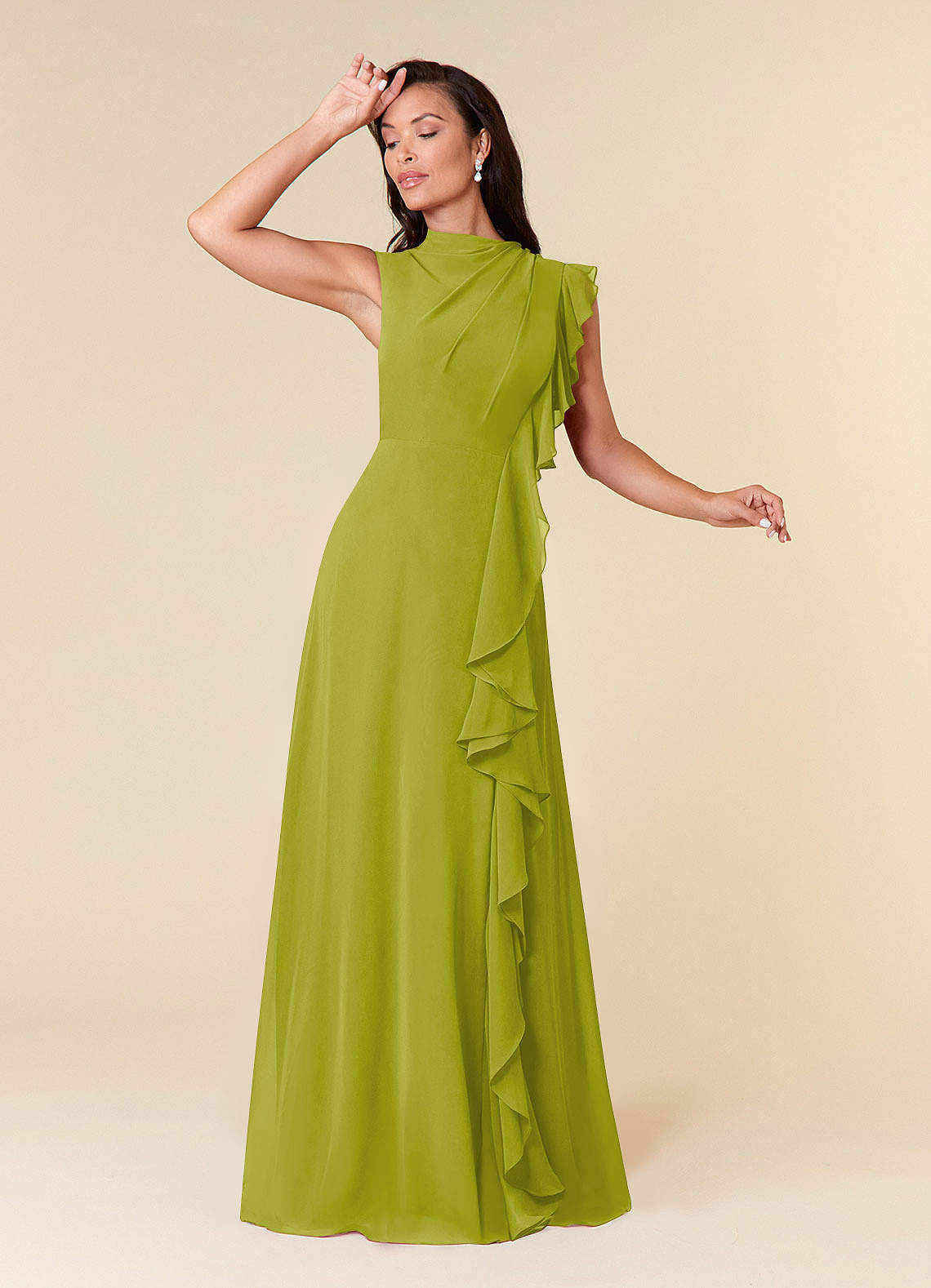 A라인 주름진 쉬폰 플로어 길이 드레스