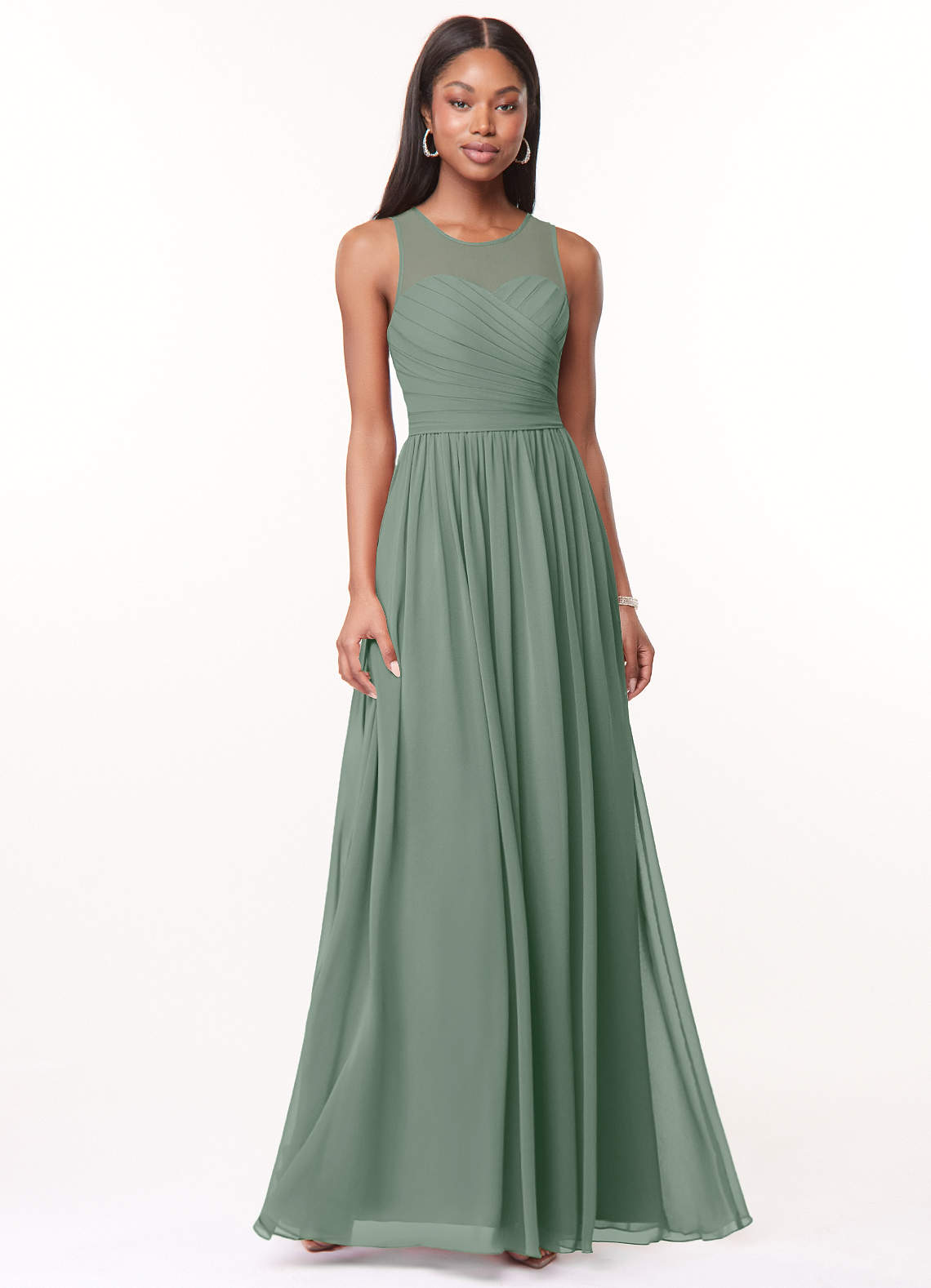 A라인 주름진 쉬폰 바닥 길이 드레스