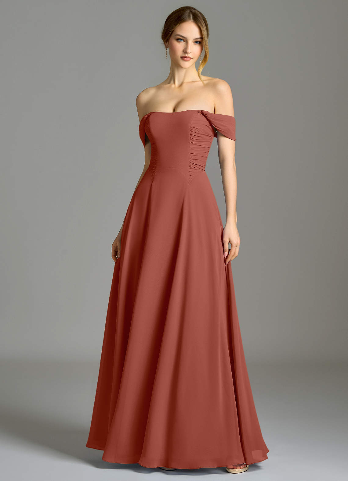 A라인 포켓이 있는 쉬폰 바닥 길이 드레스