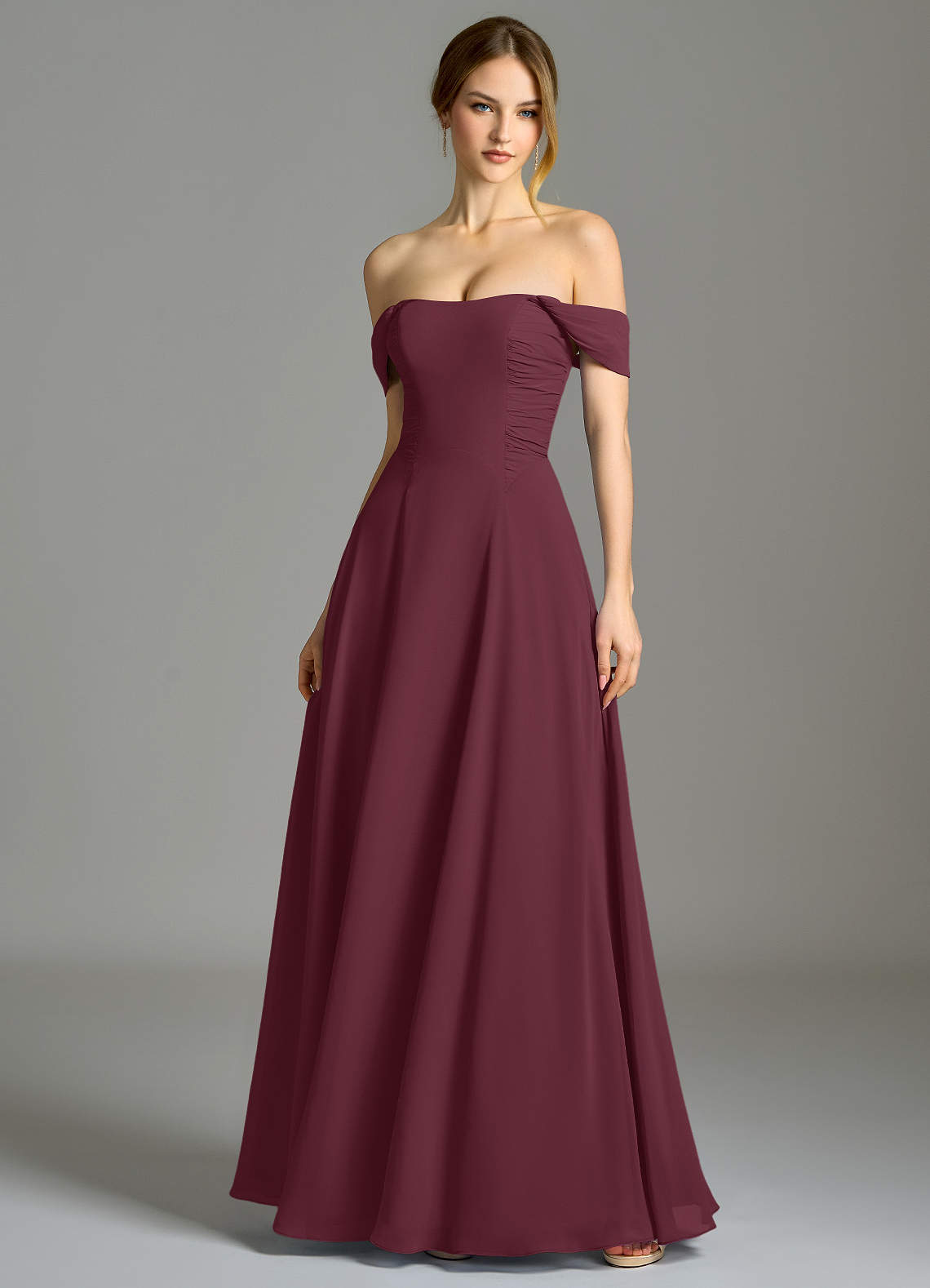 Azazie Oasis 신부 들러리 드레스 A라인 포켓이 있는 쉬폰 바닥 길이 드레스 image1