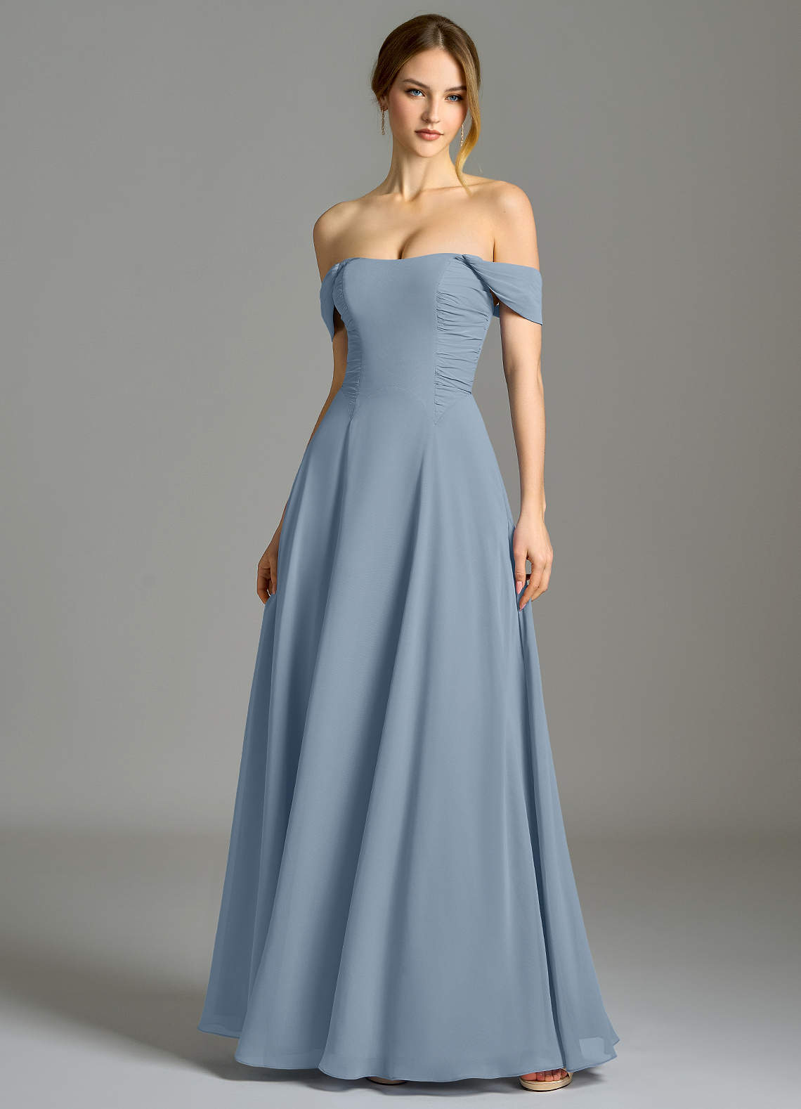 Azazie Oasis 신부 들러리 드레스 A라인 포켓이 있는 쉬폰 바닥 길이 드레스 image1