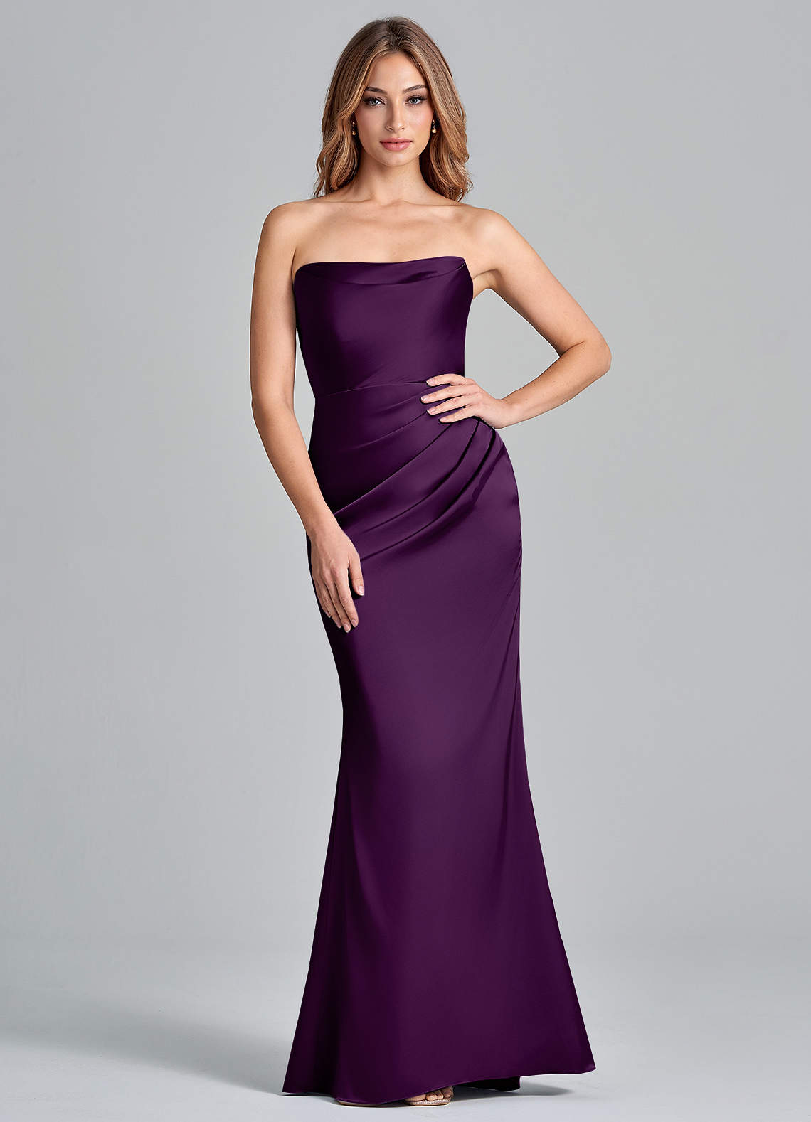 인어 스트랩리스 스트레치 새틴 바닥 길이 드레스