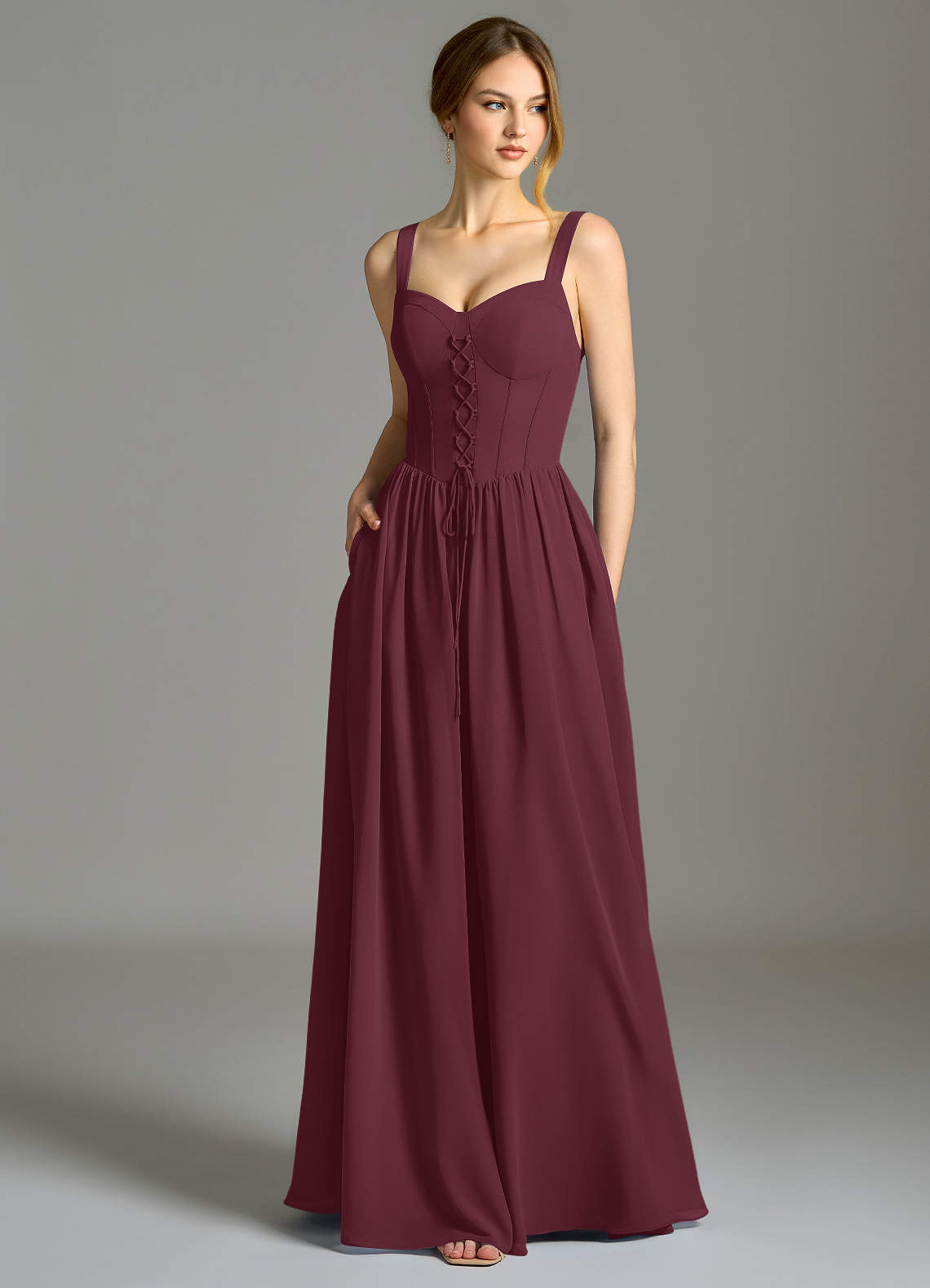 A라인 스윗하트 네크라인 쉬폰 바닥 길이 드레스