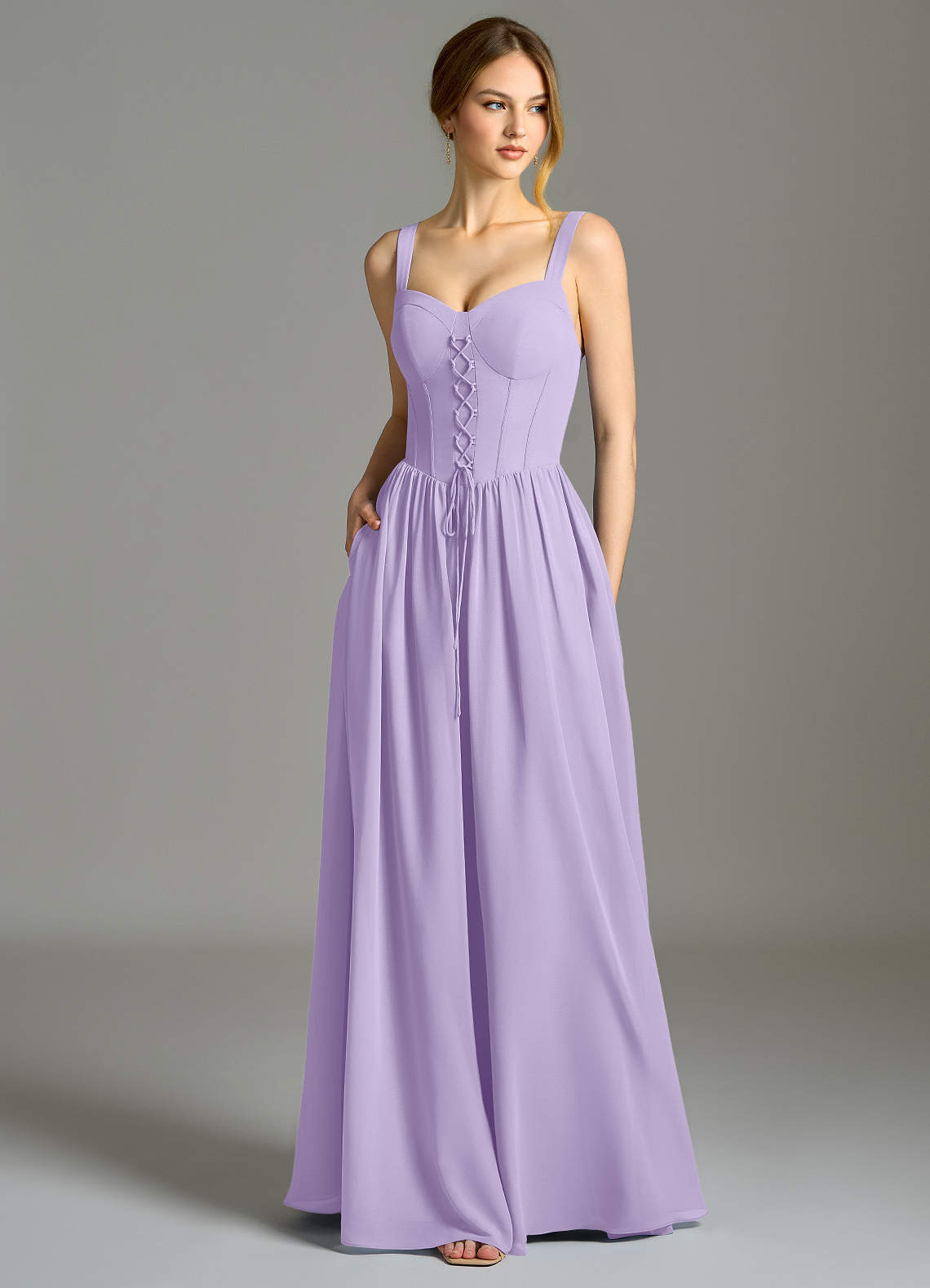 Azazie Porscha 신부 들러리 드레스 A라인 스윗하트 네크라인 쉬폰 바닥 길이 드레스 image1