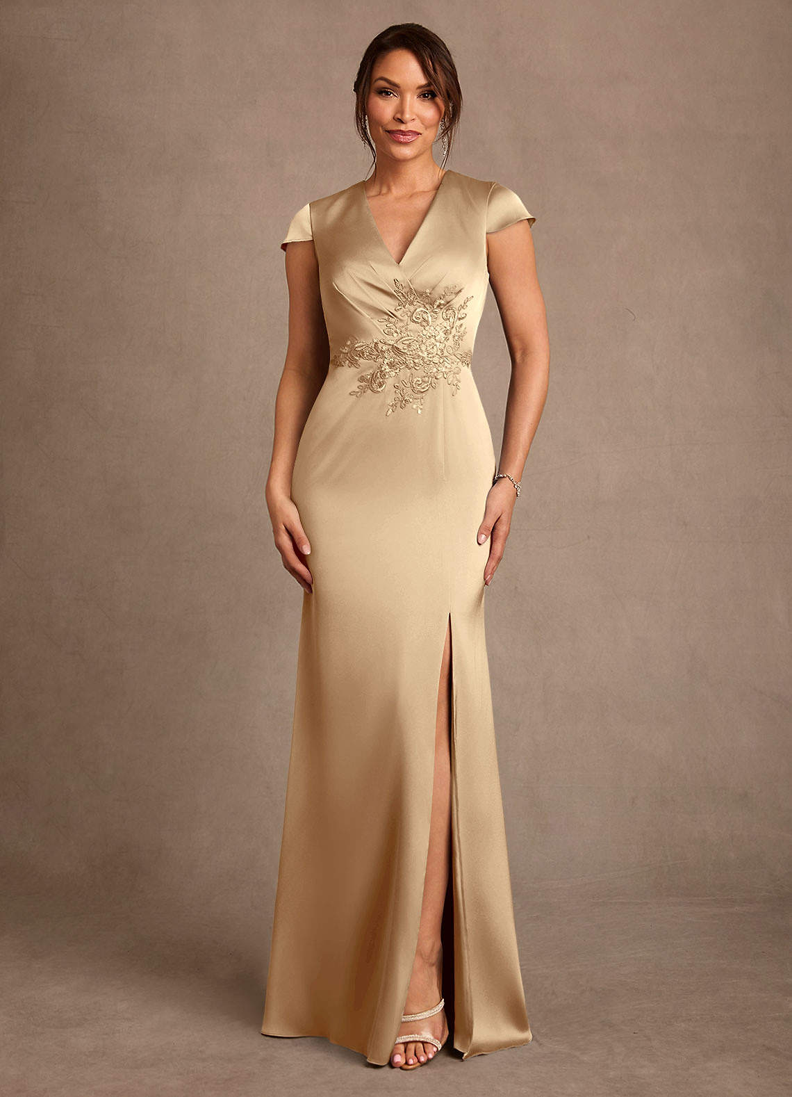 Azazie Rilda 신부의 어머니 드레스 쉬스 레이스 스트레치 새틴 플로어 길이 드레스 image1