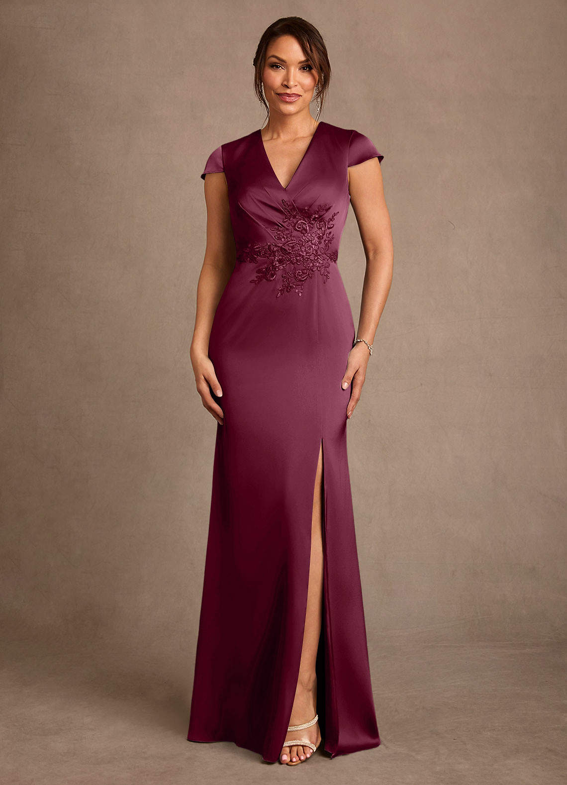 Azazie Rilda 신부의 어머니 드레스 쉬스 레이스 스트레치 새틴 플로어 길이 드레스 image1