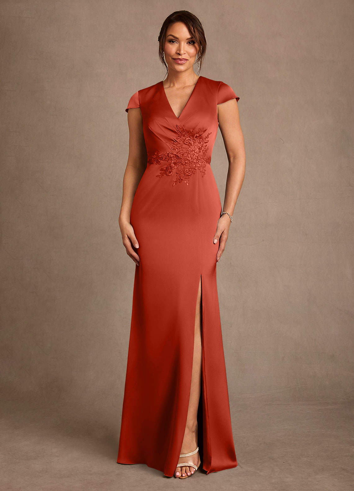 쉬스 레이스 스트레치 새틴 플로어 길이 드레스