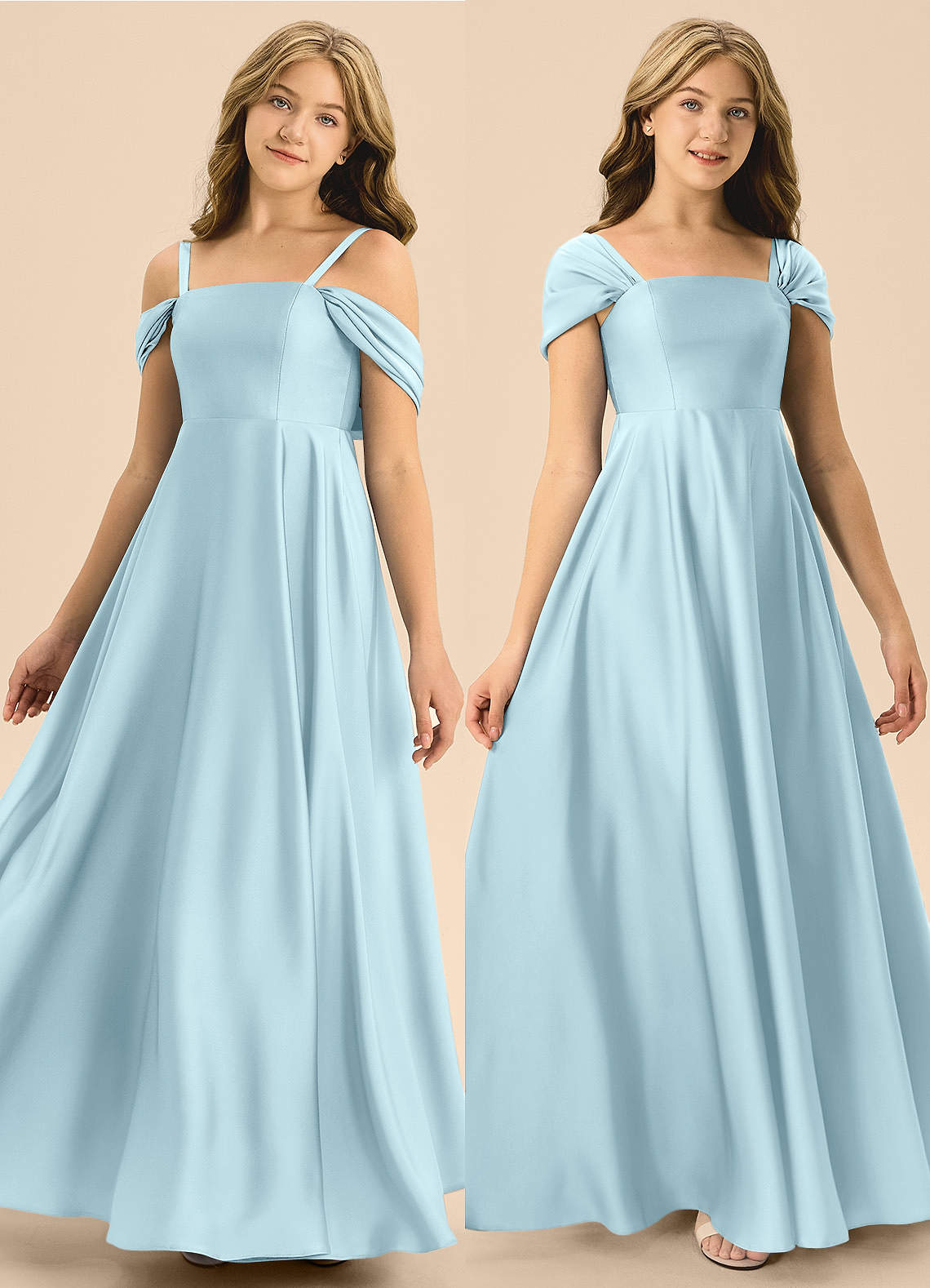 A라인 절하다 스트레치 새틴 플로어 길이 주니어 신부 들러리 드레스