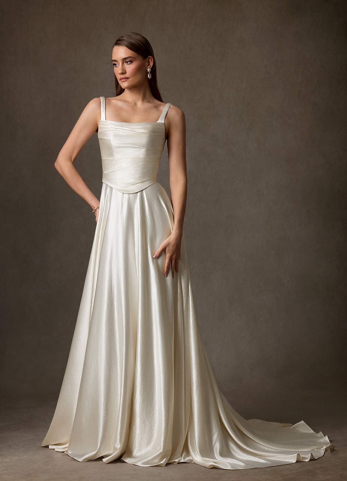 A라인 스퀘어 네크라인 매력 있는 사람 채플 트레인 드레스