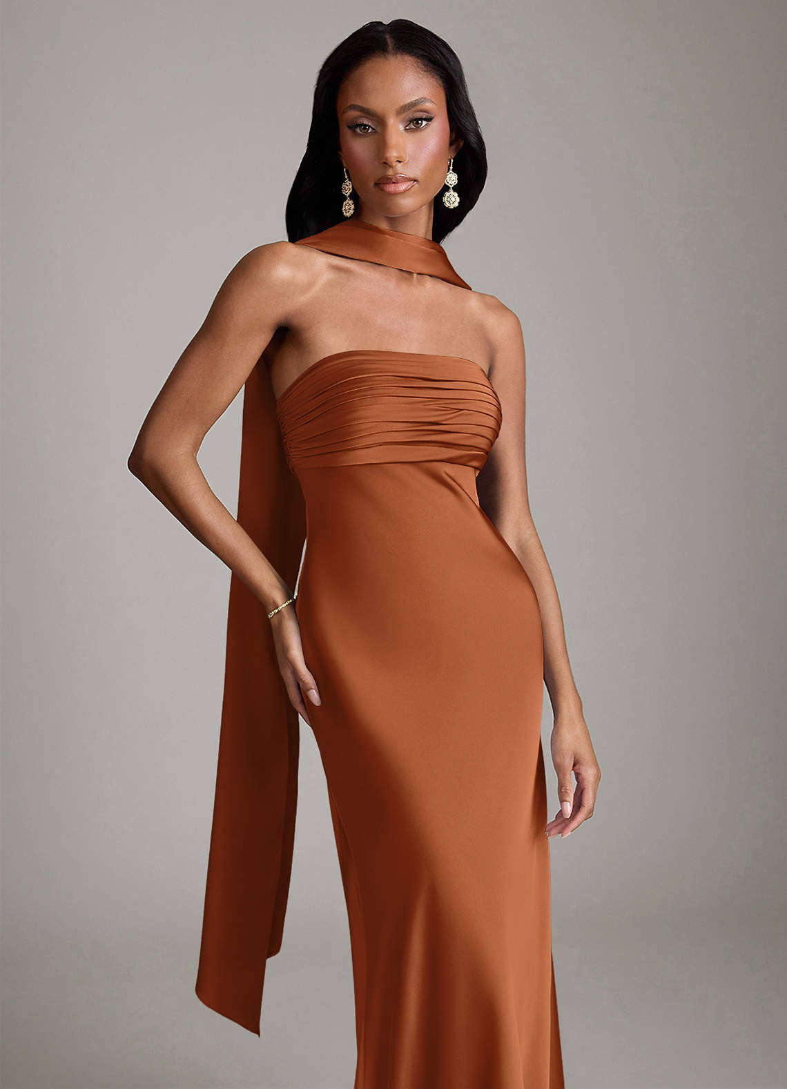 Azazie Saylor 신부 들러리 드레스 인어 스트랩리스 스트레치 새틴 바닥 길이 드레스 image1