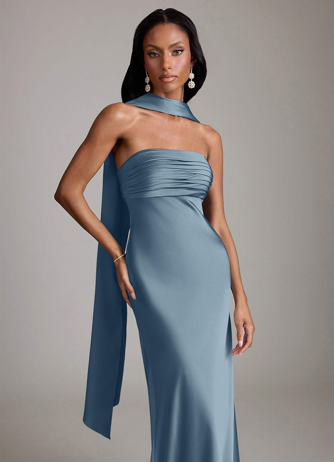 인어 스트랩리스 스트레치 새틴 바닥 길이 드레스