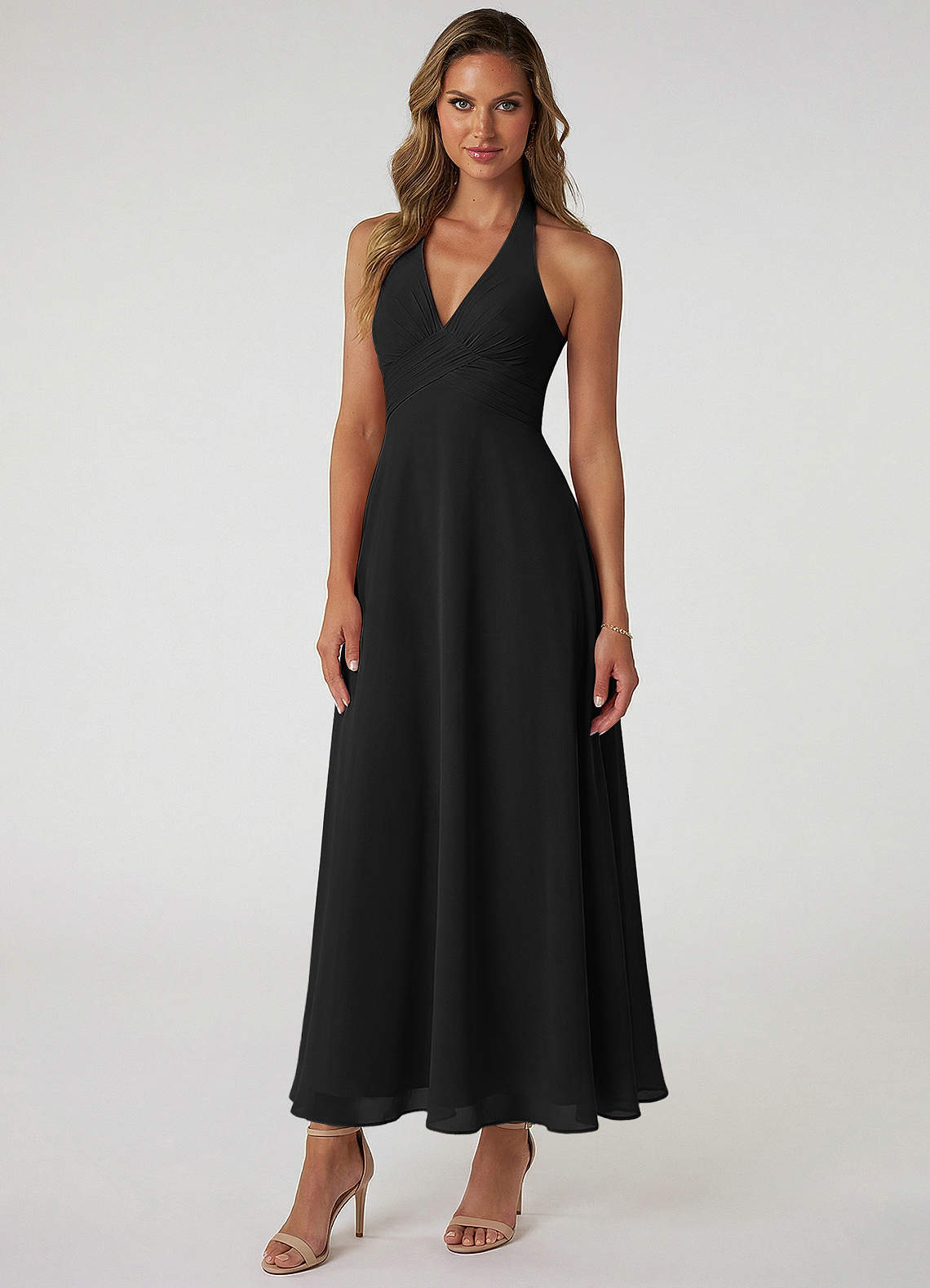 A라인 주름진 쉬폰 발목 길이 드레스