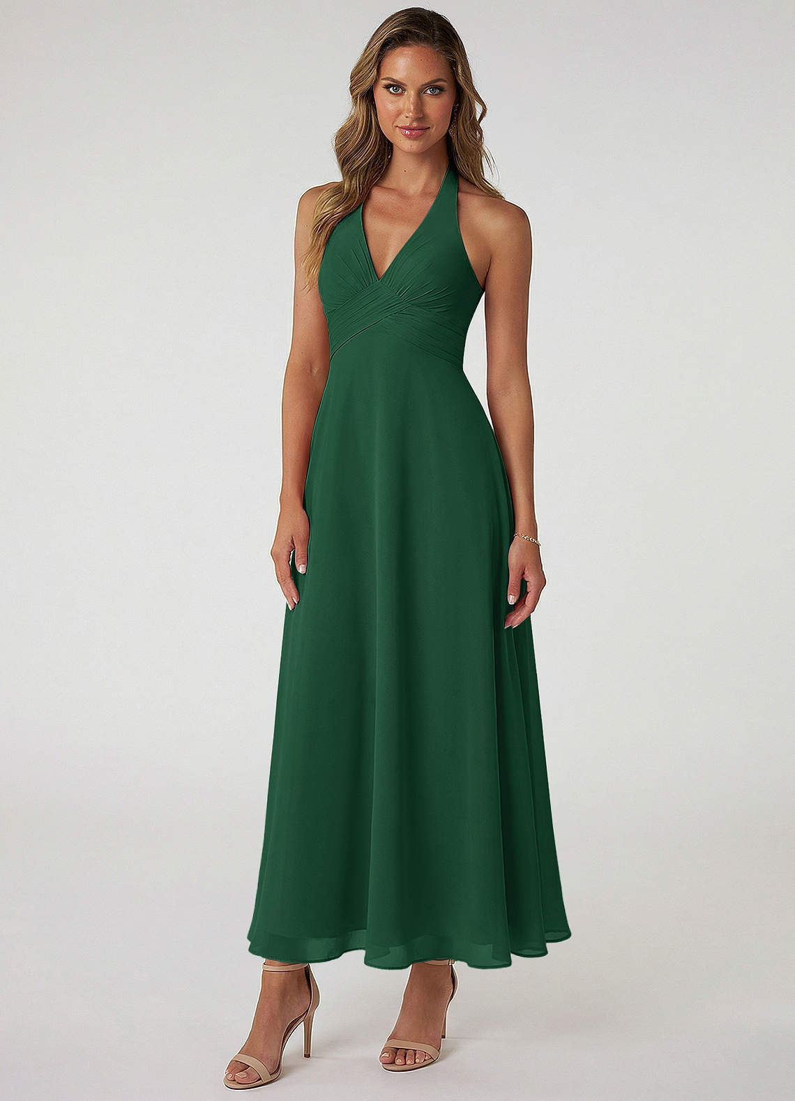 Azazie Tessie 신부 들러리 드레스 A라인 주름진 쉬폰 발목 길이 드레스 image1