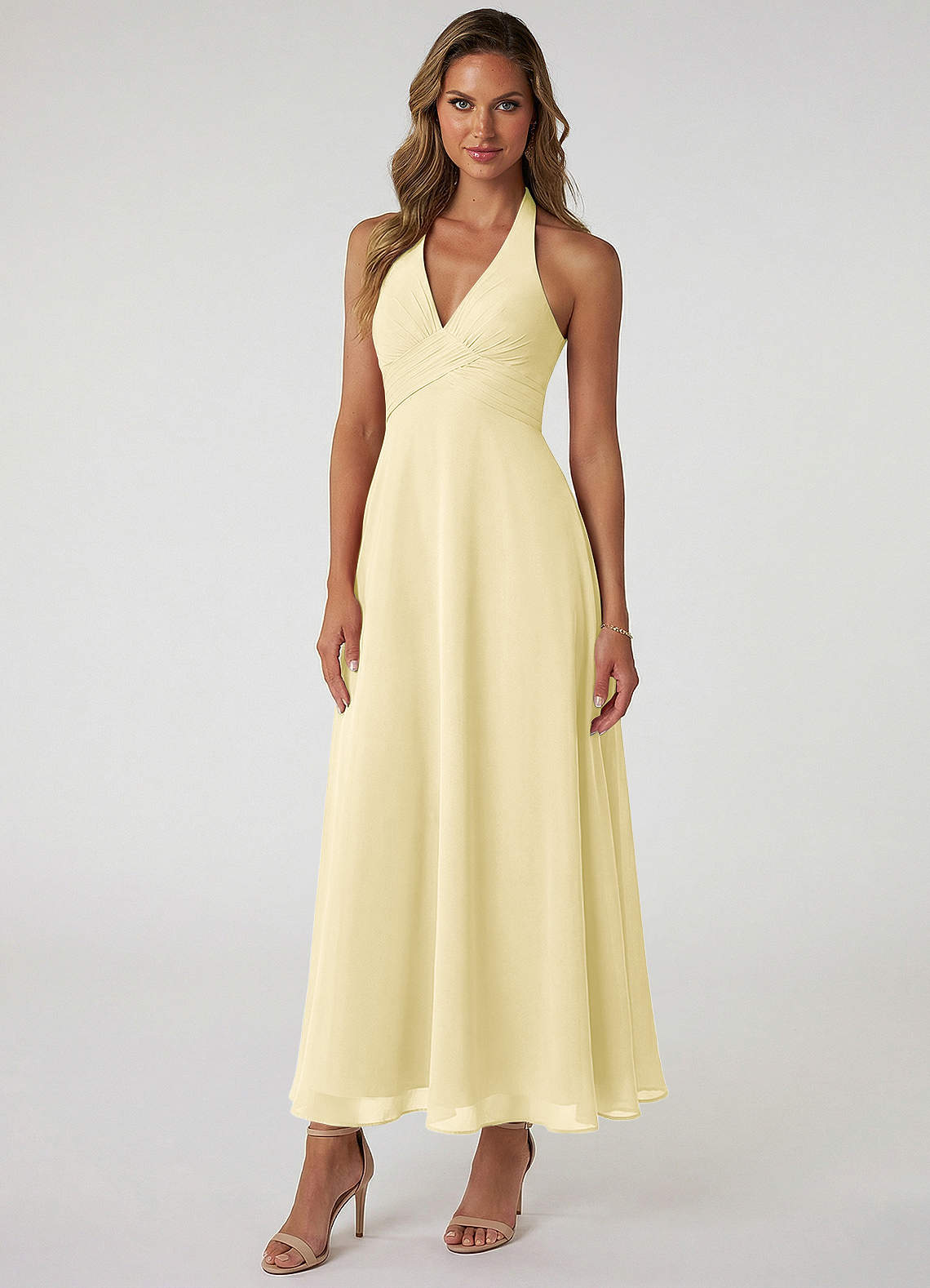 A라인 주름진 쉬폰 발목 길이 드레스