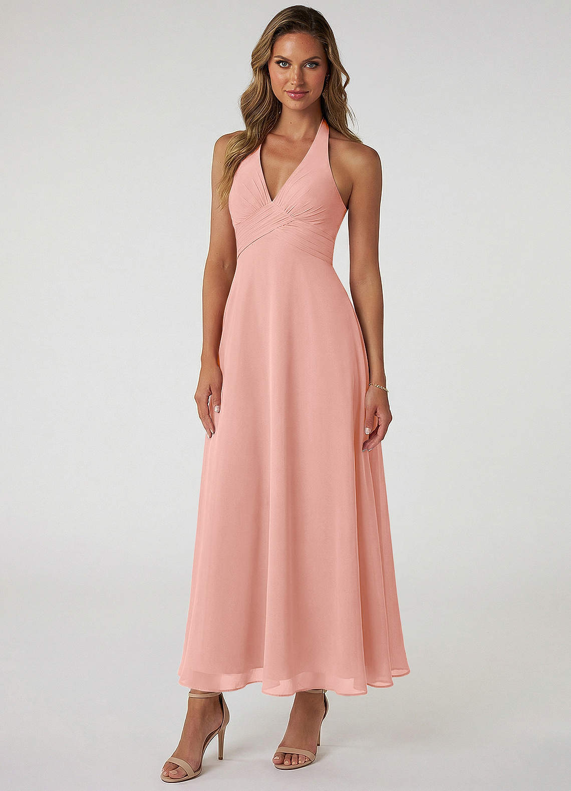 A라인 주름진 쉬폰 발목 길이 드레스