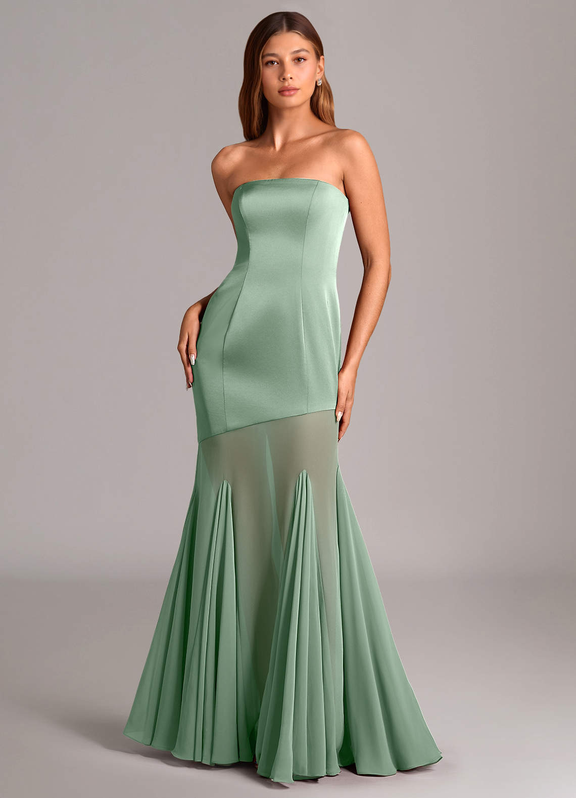 인어 스트랩리스 쉬폰 바닥 길이 드레스