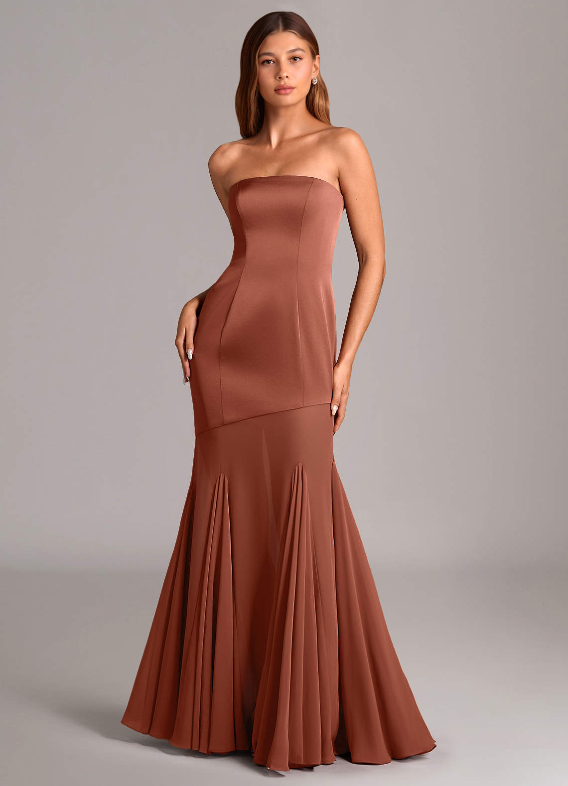 인어 스트랩리스 쉬폰 바닥 길이 드레스
