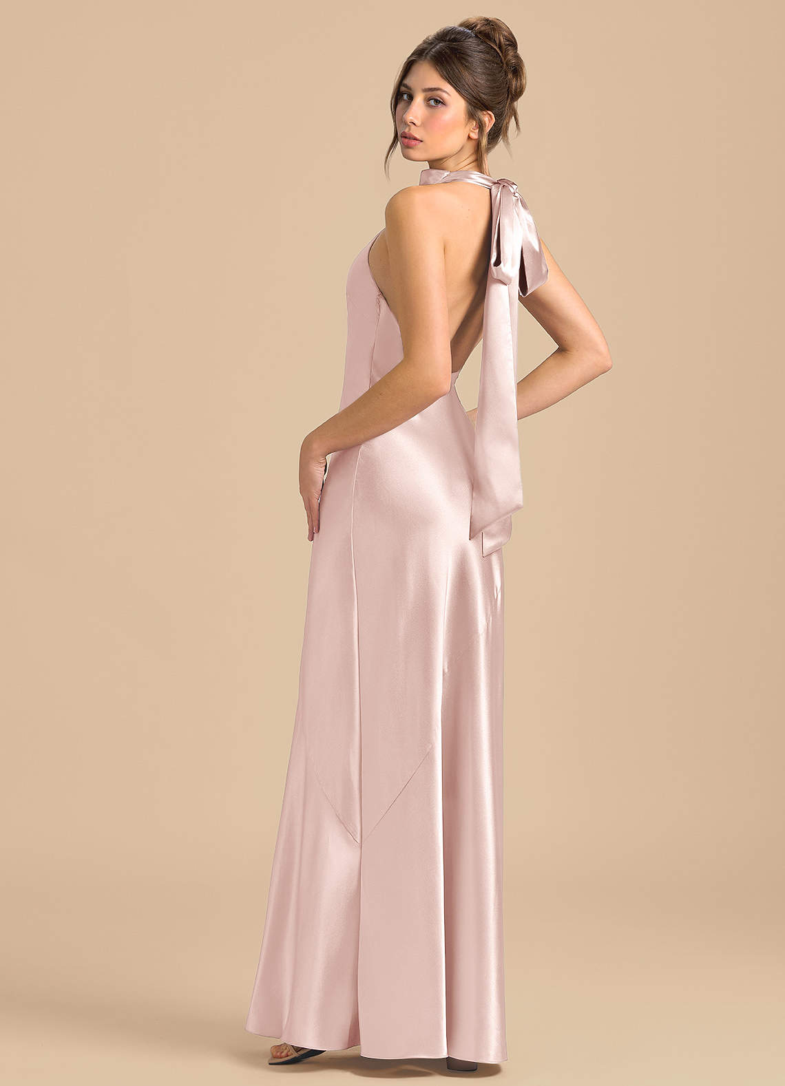 쉬스 하이넥 메탈릭 새틴 바닥 길이 드레스
