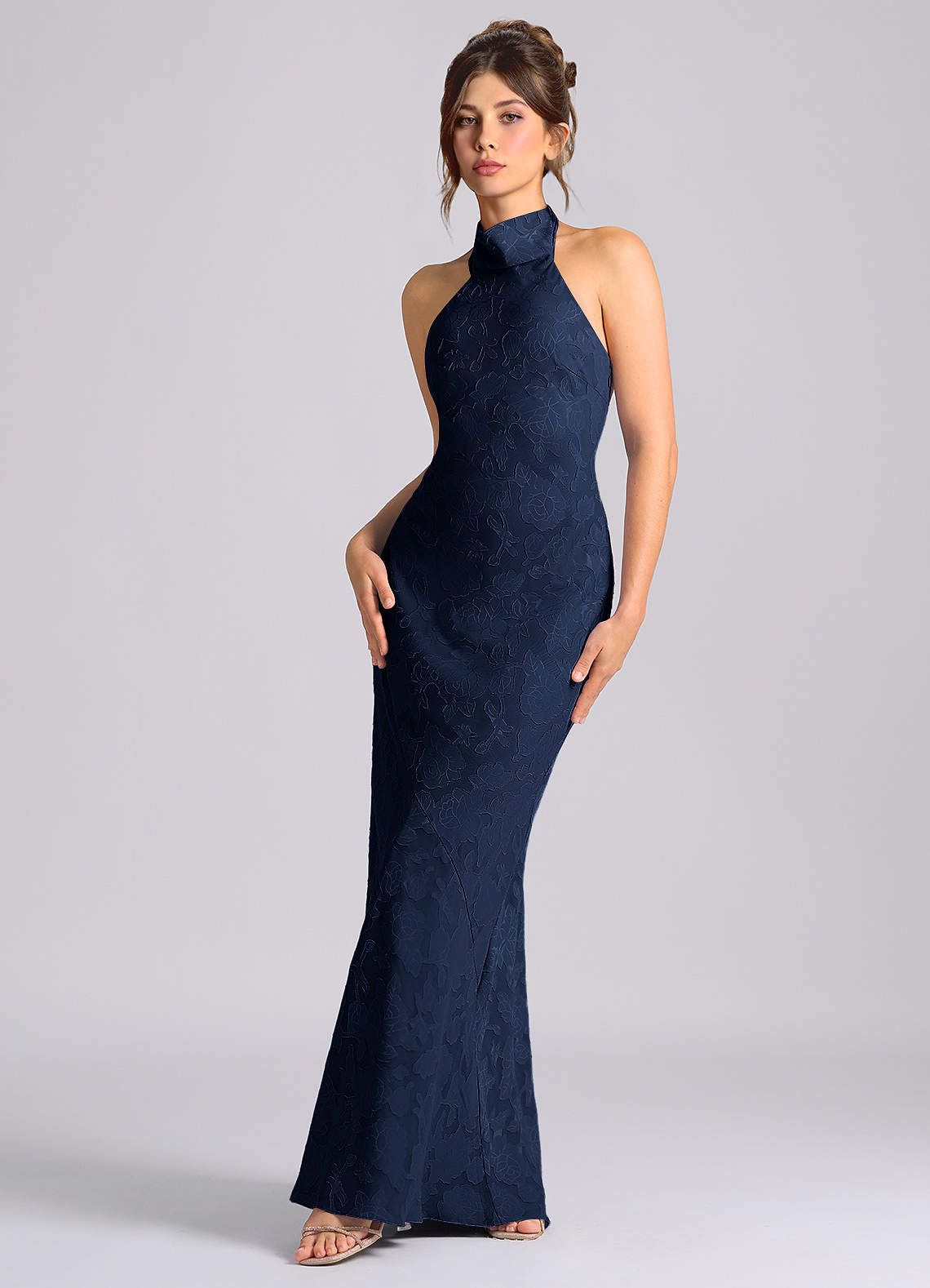 인어 하이넥 플로럴 번아웃 바닥 길이 드레스