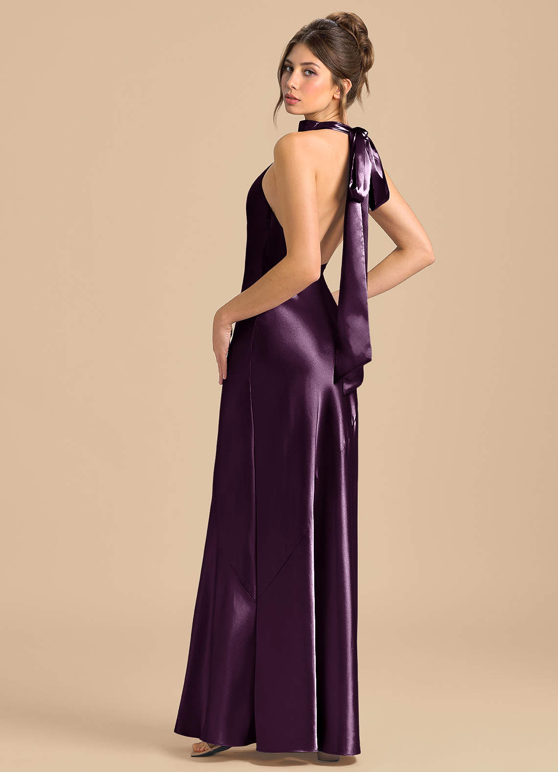 쉬스 하이넥 메탈릭 새틴 바닥 길이 드레스