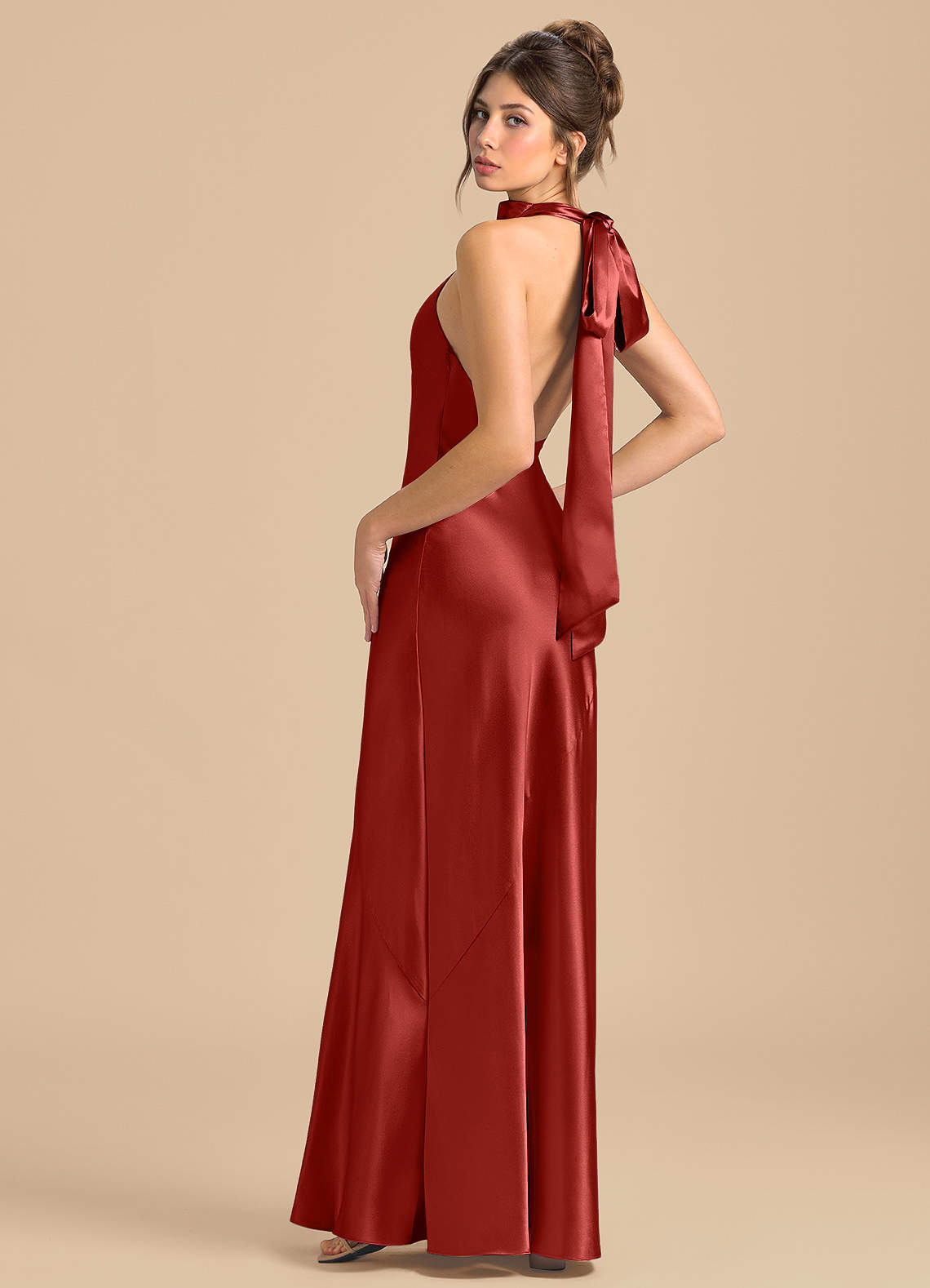 쉬스 하이넥 메탈릭 새틴 바닥 길이 드레스