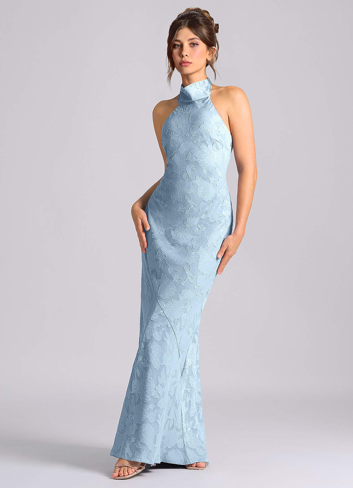 인어 하이넥 플로럴 번아웃 바닥 길이 드레스