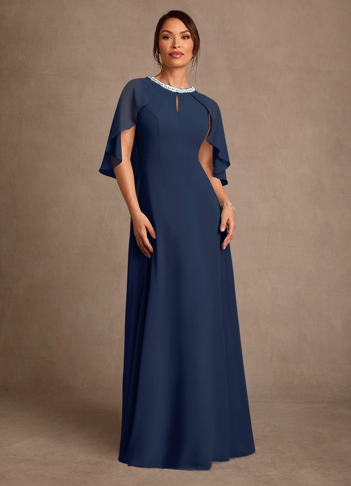A라인 구슬 쉬폰 플로어 길이 드레스