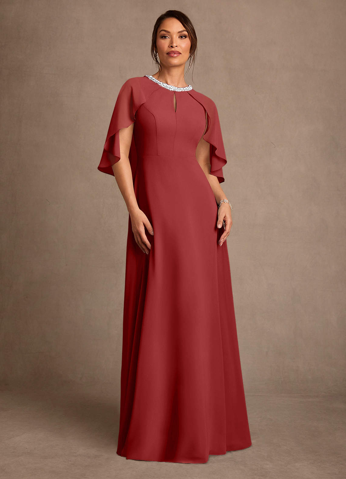 A라인 구슬 쉬폰 플로어 길이 드레스