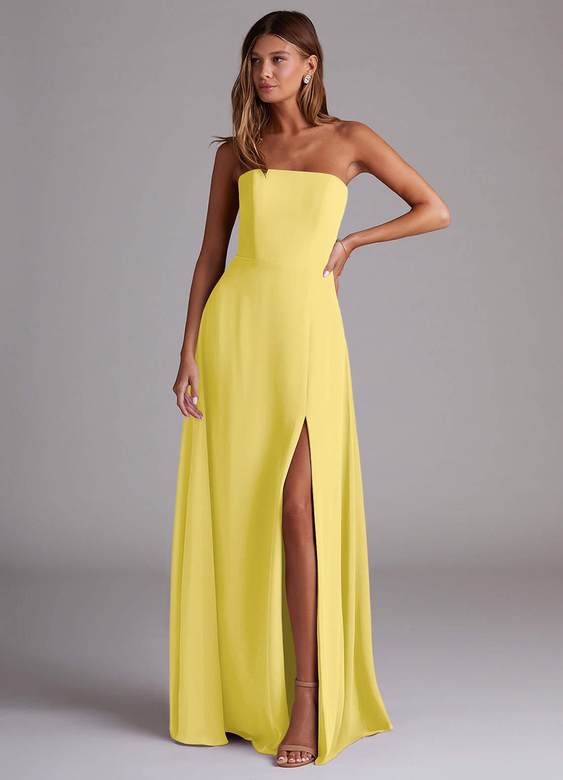 A라인 사이드 슬릿 쉬폰 바닥 길이 드레스