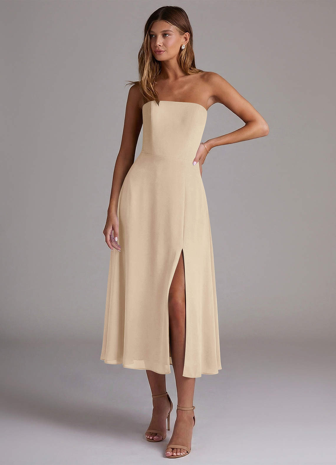 A라인 스트랩리스 쉬폰 티 길이 드레스