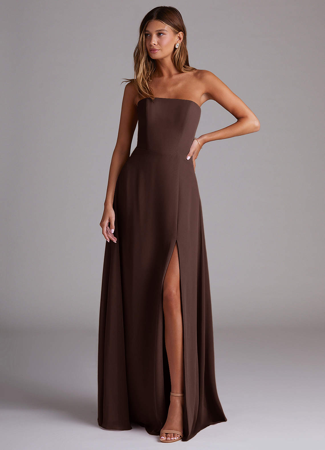 A라인 사이드 슬릿 쉬폰 바닥 길이 드레스