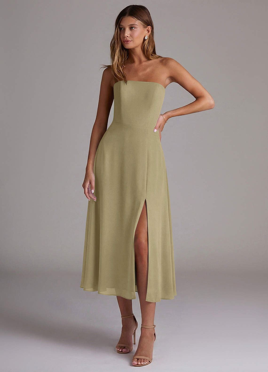 A라인 스트랩리스 쉬폰 티 길이 드레스