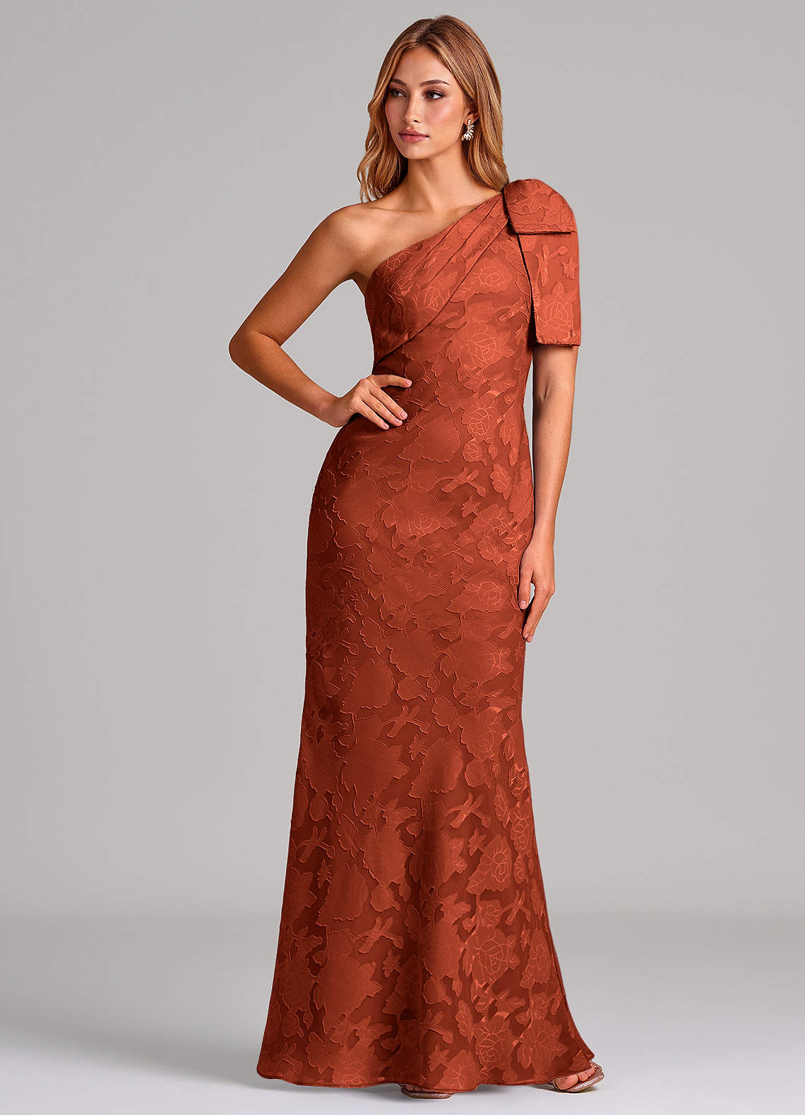 인어 한쪽 어깨 플로럴 번아웃 바닥 길이 드레스