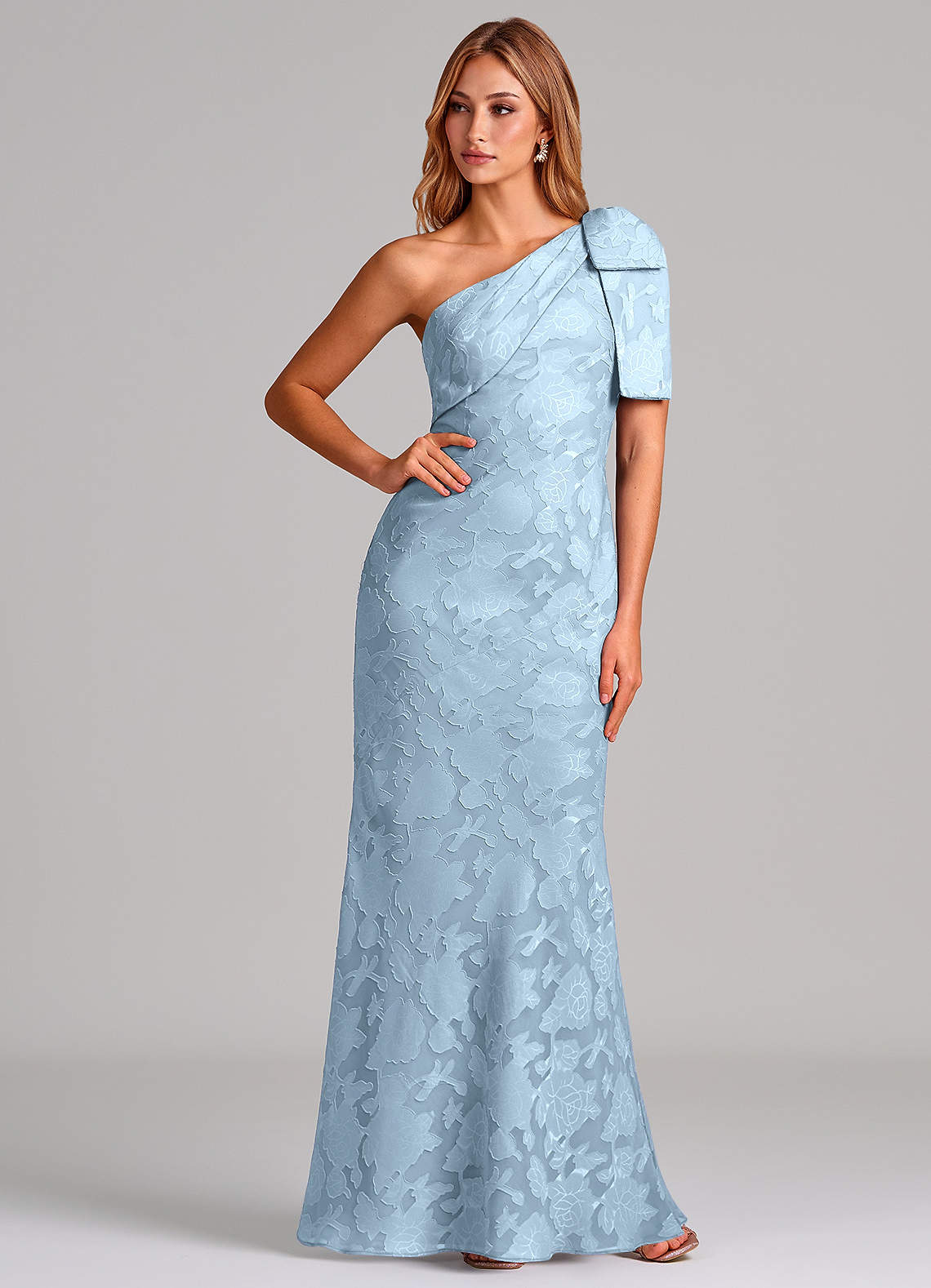 인어 한쪽 어깨 플로럴 번아웃 바닥 길이 드레스
