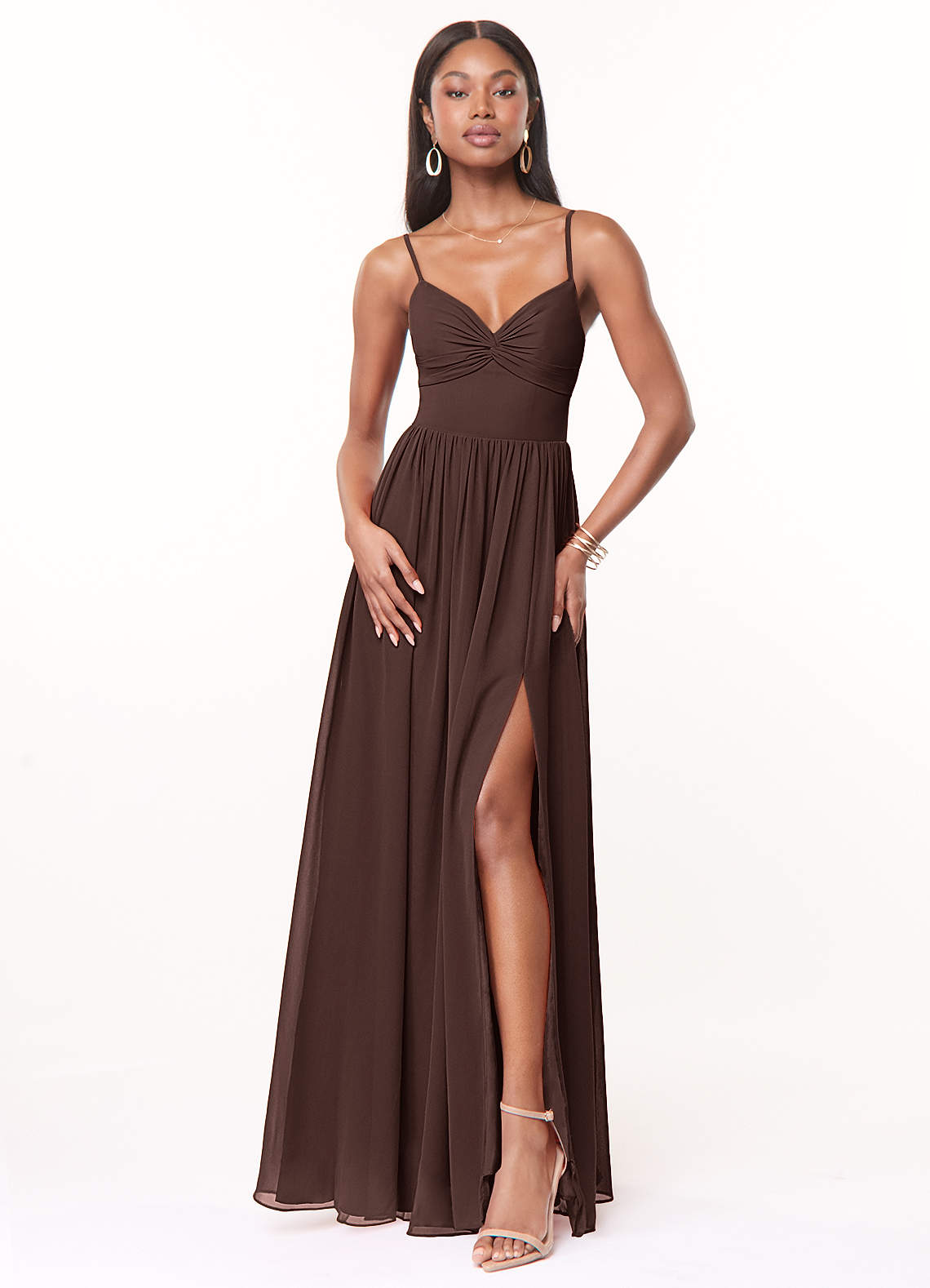 A라인 주름진 쉬폰 바닥 길이 드레스