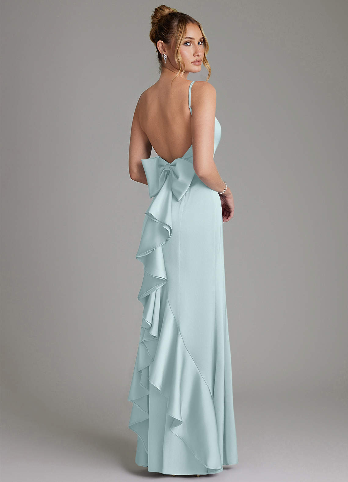 인어 절하다 스트레치 새틴 바닥 길이 드레스