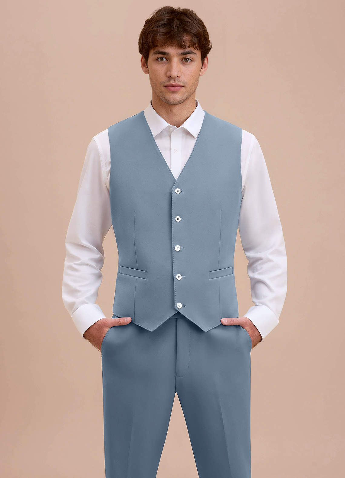 Ethan 더스티 블루 세련된 직조 슈트 조끼