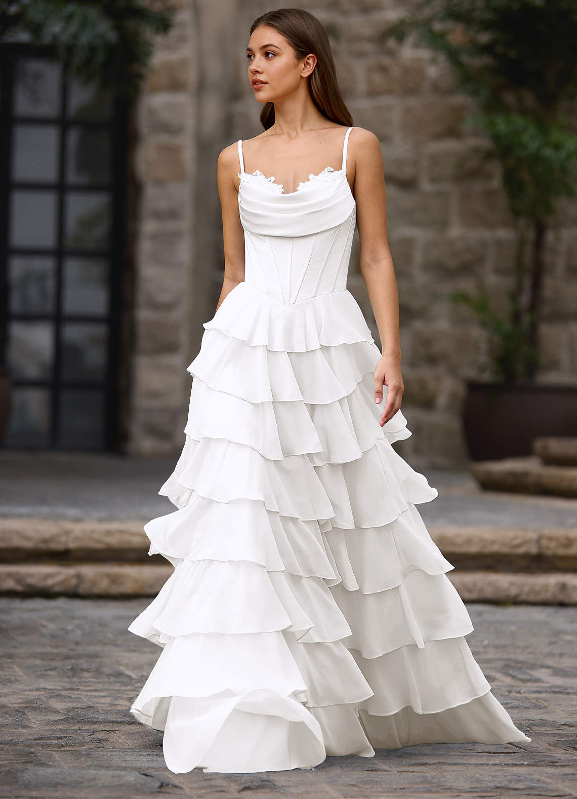 Floralace 화이트 러플 A라인 프롬 드레스