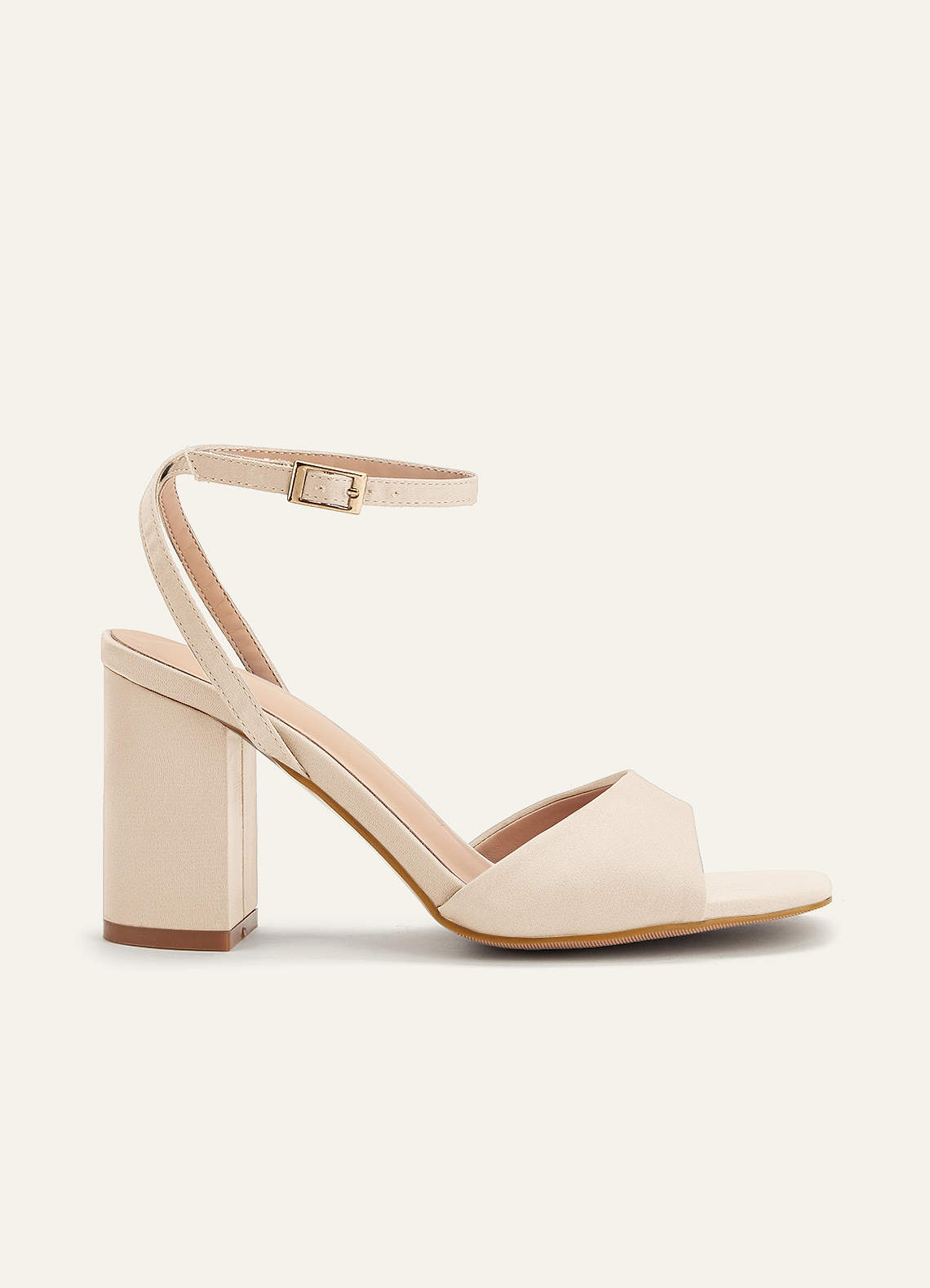 매칭 컬러 스트레치 새틴 스퀘어 토 블록 힐