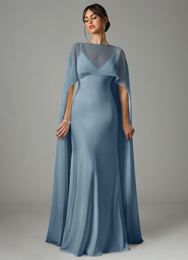 Jurk van Stretch Satijn met A-Lijn Stoffig Blauw