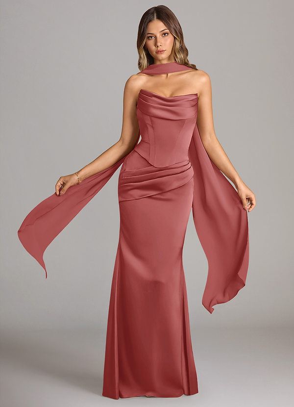 162 Artikelen Jurk van Stretch Satijn met A-Lijn Geplooid Antieke Roos