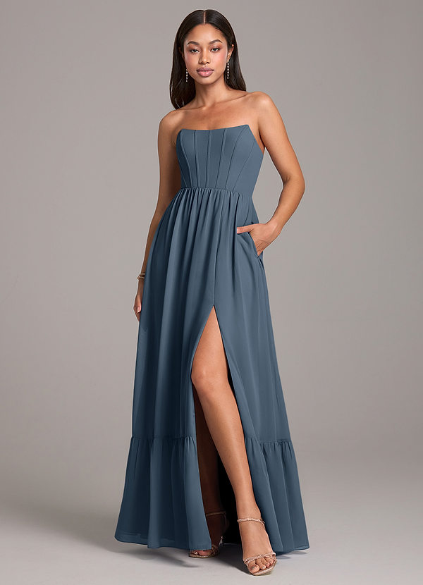 241 Artikelen Jurk van Chiffon met A-Lijn Geruffeld Neptunus