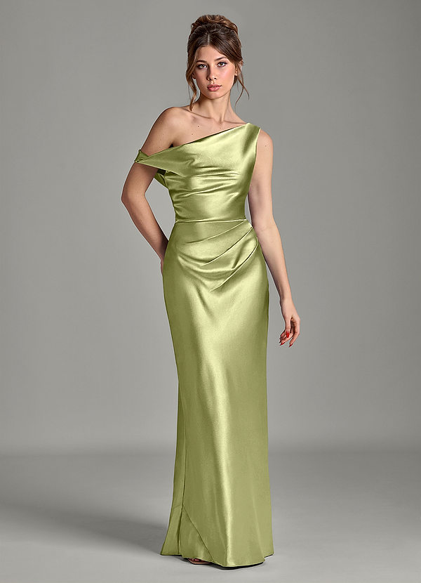 Converteerbaar Jurk van Metaalachtig Satijn met Kolom Off the Shoulder Pistache